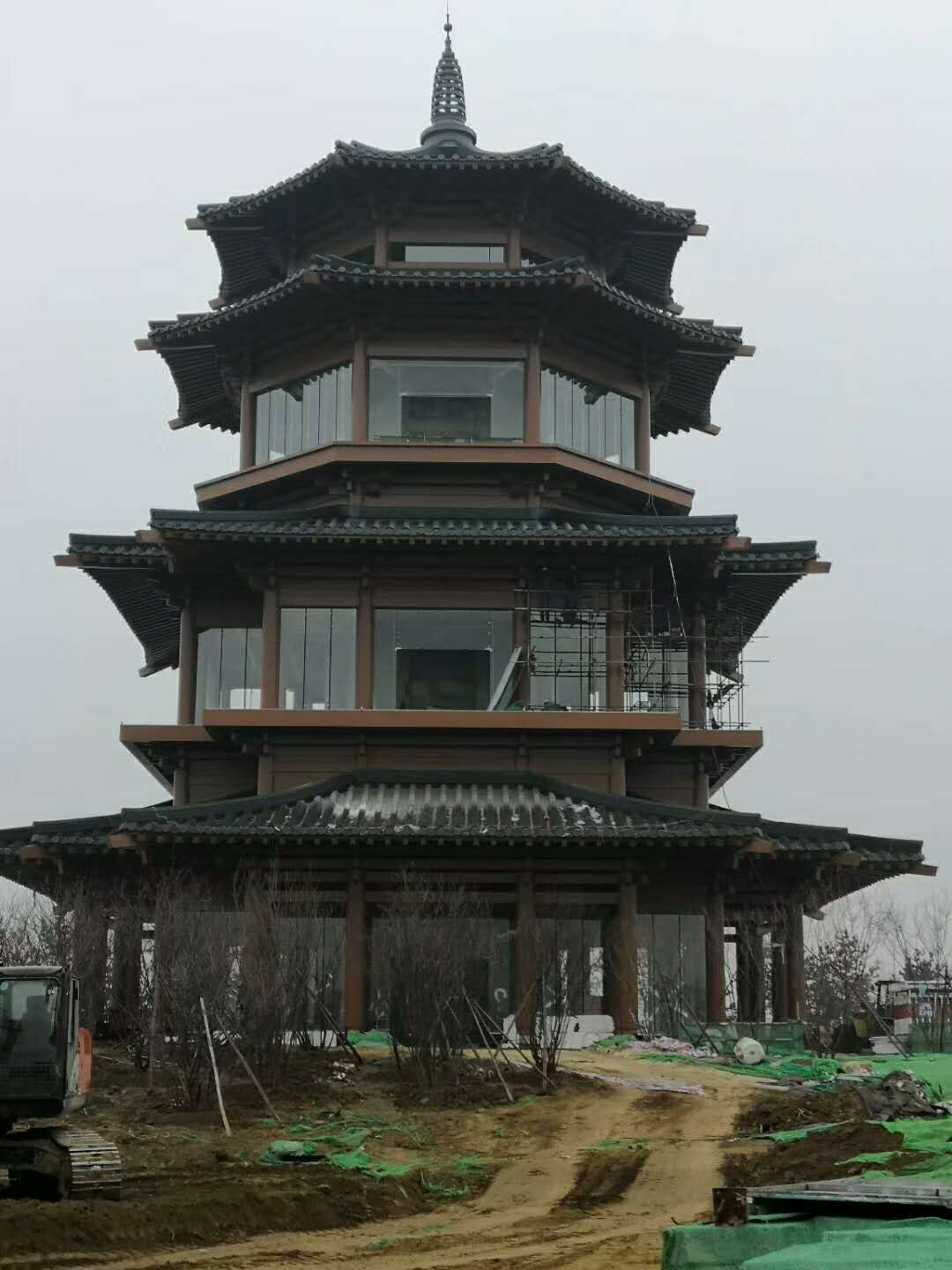 2月13日西安市渼陂湖公園紫煙閣鋁瓦屋面完美收官