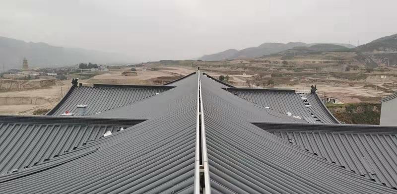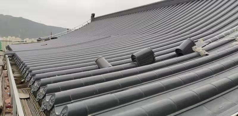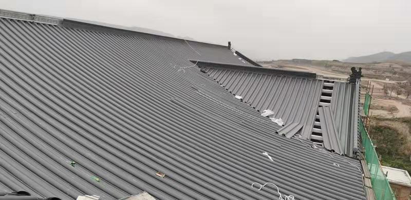 甘肅慶陽環縣中學教學樓屋面,采用東申仿古金屬瓦,面積總共5500平方,選用2號連體仿古金屬瓦,感謝環縣中學對東申仿古金屬瓦廠家信任和支持;