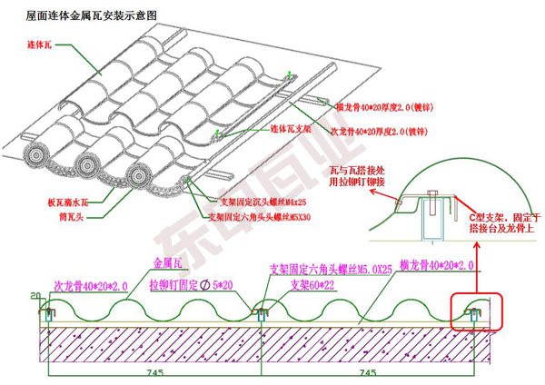 1.安裝中需按照【仿古瓦安裝手冊(cè)】的順序來(lái)進(jìn)行,保證效率;