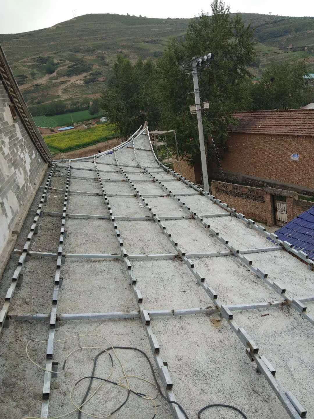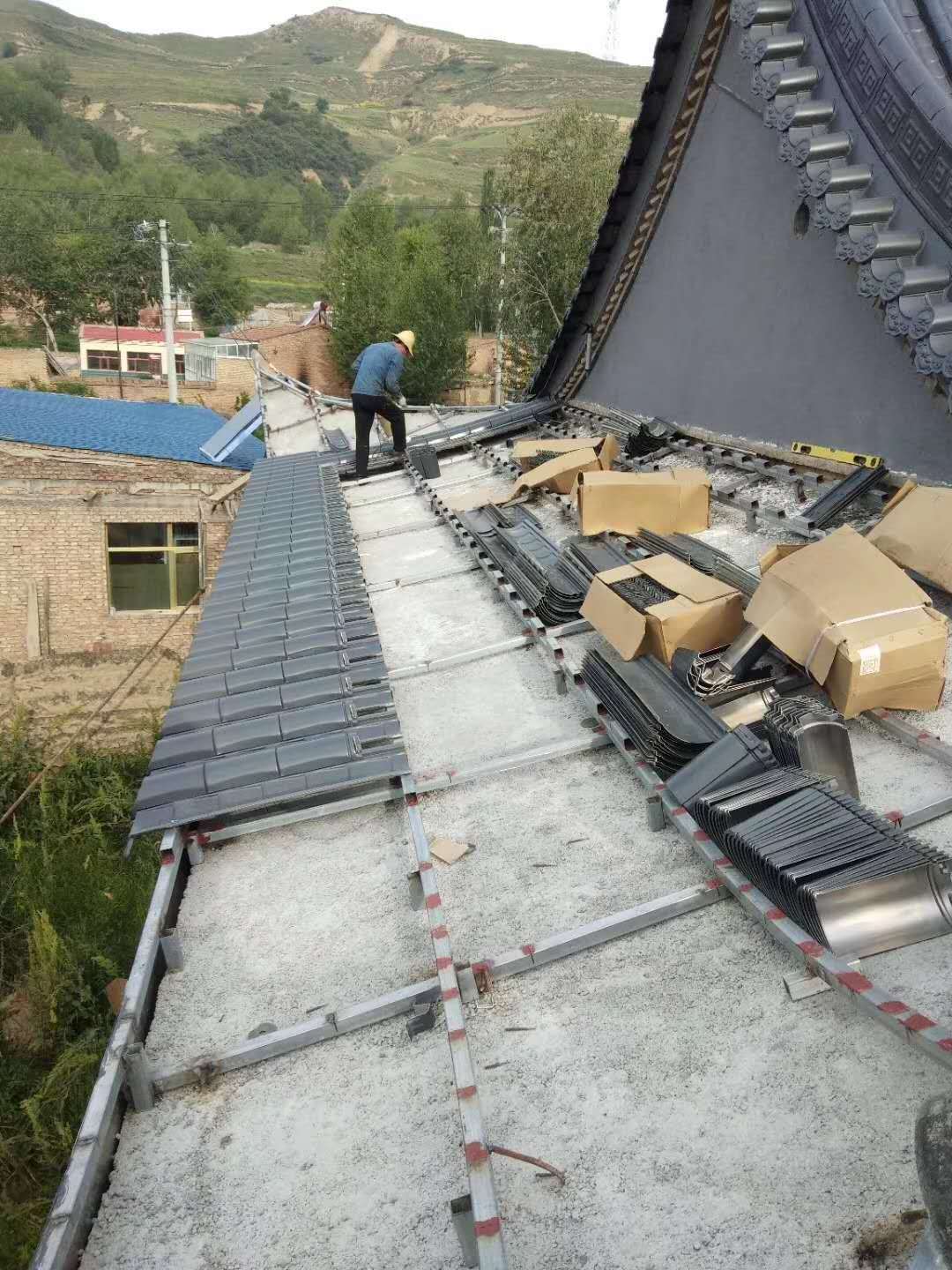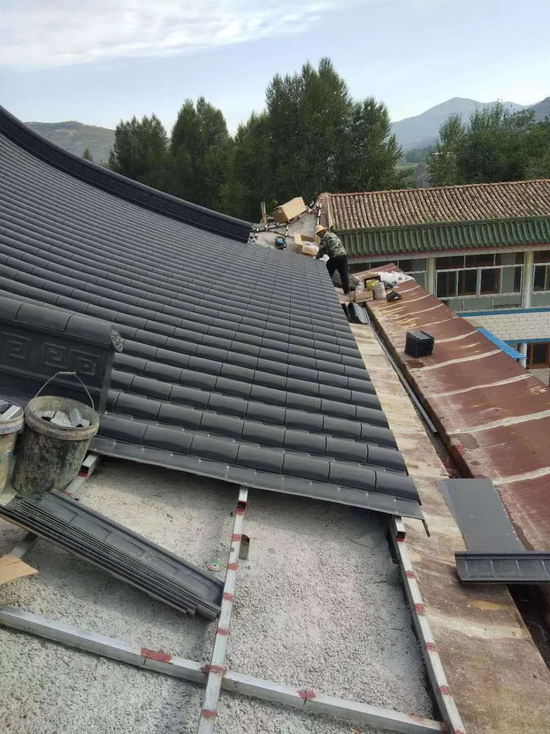 青海大通縣下灘清真寺改造中式分體屋面仿古金屬瓦,選用東申瓦業(yè)分體2號(hào)瓦;厚度為1.2mm,面積約450平方米;金屬屋面整體亮麗如新完全符合新中式風(fēng)格;
