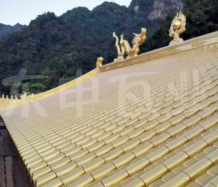 仿古銅瓦即仿古風格+銅板合成;工藝精細,復雜程度高,為古建筑可選;銅材質千年不損壞;
