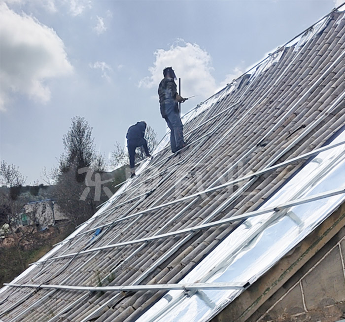 西寧崗沖上清真寺屋面換瓦工程正在施工中,東申仿古金屬瓦廠家專業供應瓦;材質為鋁合金,風格:仿古風;瓦型:2號分體瓦; 厚度:1.2厚;面積約600平方;馬上完美收官!