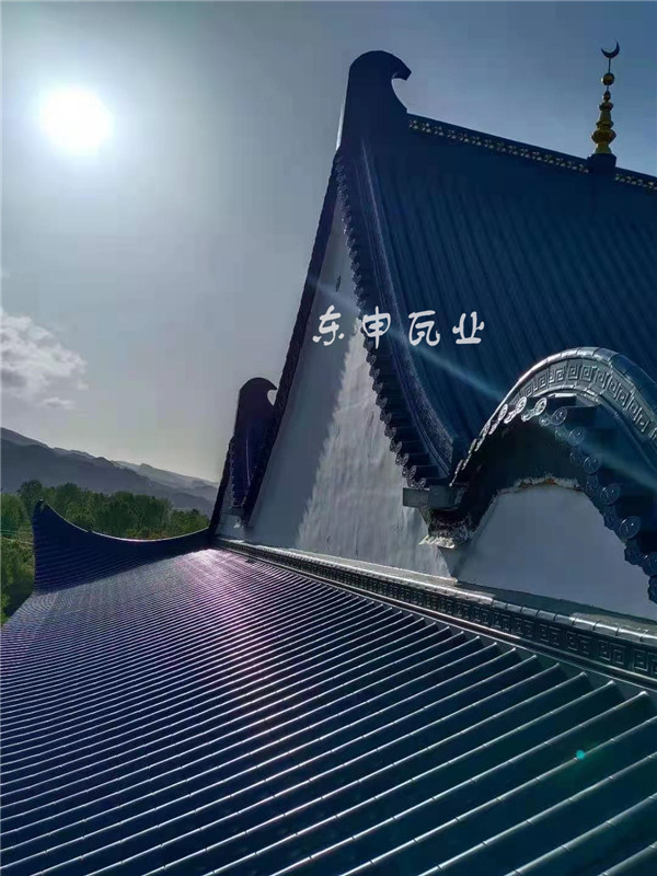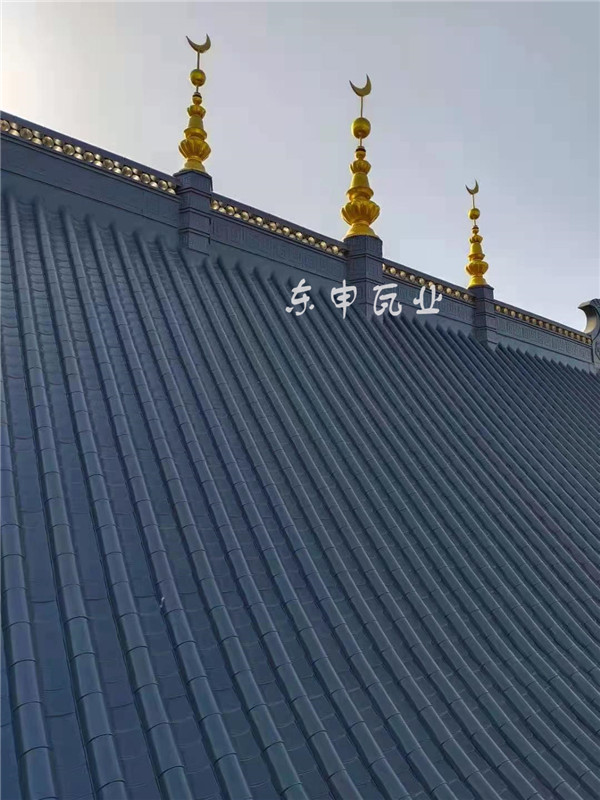 青海省黃南藏族自治州尖扎清真寺屋面改造工程順利完工,采用東申鋁鎂錳合金瓦瓦型2號分體瓦,厚度1.2mm,顏色:灰色;面積約1700平方,新中式仿古風格;感謝主任對東申瓦業的信任;