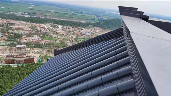 8月4日徐州園博園曲廊橋亭屋面鋁合金瓦工程