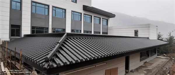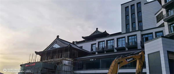 山東泰安溫泉酒店新型鋁瓦工程收尾正在進行,主要采用東申瓦業的分體2號鋁瓦,材質為:5052系鋁合金,表面噴涂氟碳漆,新中式仿古風格,感謝酒店項目負責人高總的是支持和信任。