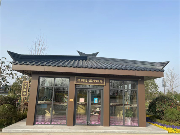 西安昆明池商亭鋁鎂錳合金瓦屋面工程完美完工,采用分體瓦,厚度:1.2mm 啞光深灰;300個(gè)平方,定制花型:新型旅游景區(qū)屋面瓦選用鋁鎂錳合金瓦;景觀提供工程必選。
