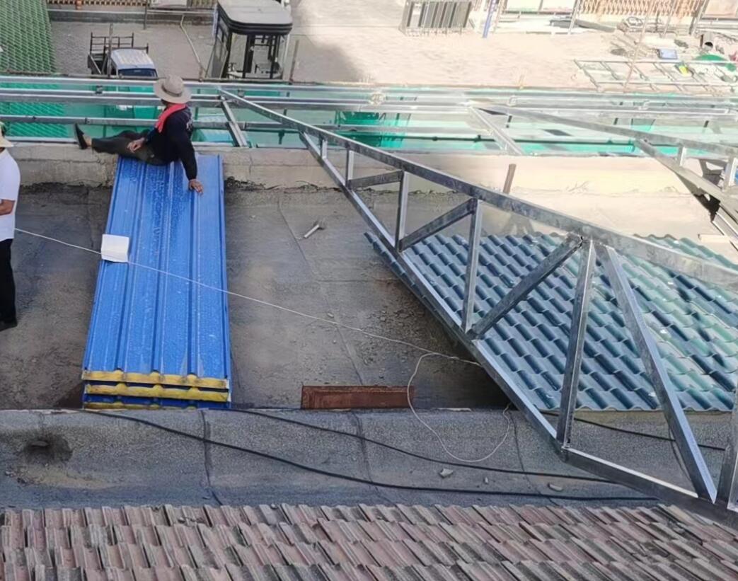 蘭州西坊清真大寺屋面鋁合金瓦改造正在施工,屋面整體采用2號分體鋁合金瓦;厚度:1.2mm 顏色:灰色; 材質:5052鋁合金瓦;面積約590個平方;風格為:新中式仿古風;感謝西坊清真寺主任阿訇對東申瓦業的信任和支持;清真寺專用屋面瓦,推薦您選擇仿古鋁合金瓦。