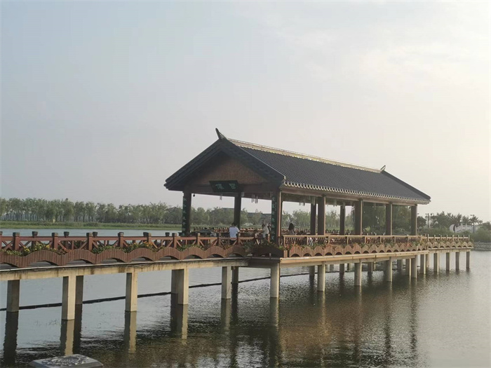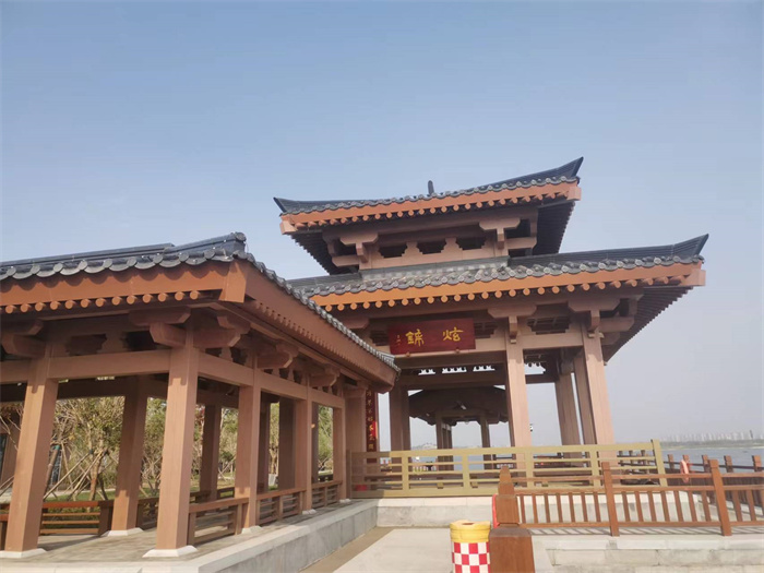 陜西昆明池閘房及廊亭工程完工,整體漂亮美觀,采用東申瓦業生產的古建金屬瓦,厚度:1.2mm,顏色,灰色;專業定制瓦當滴水,新中式仿古風格;感謝景觀提升工程(昆明池七夕公園)項目部的老總們對東申瓦業的信賴和關照。打造精美景觀水域仿古屋面工程,選用東申古建金屬瓦。
