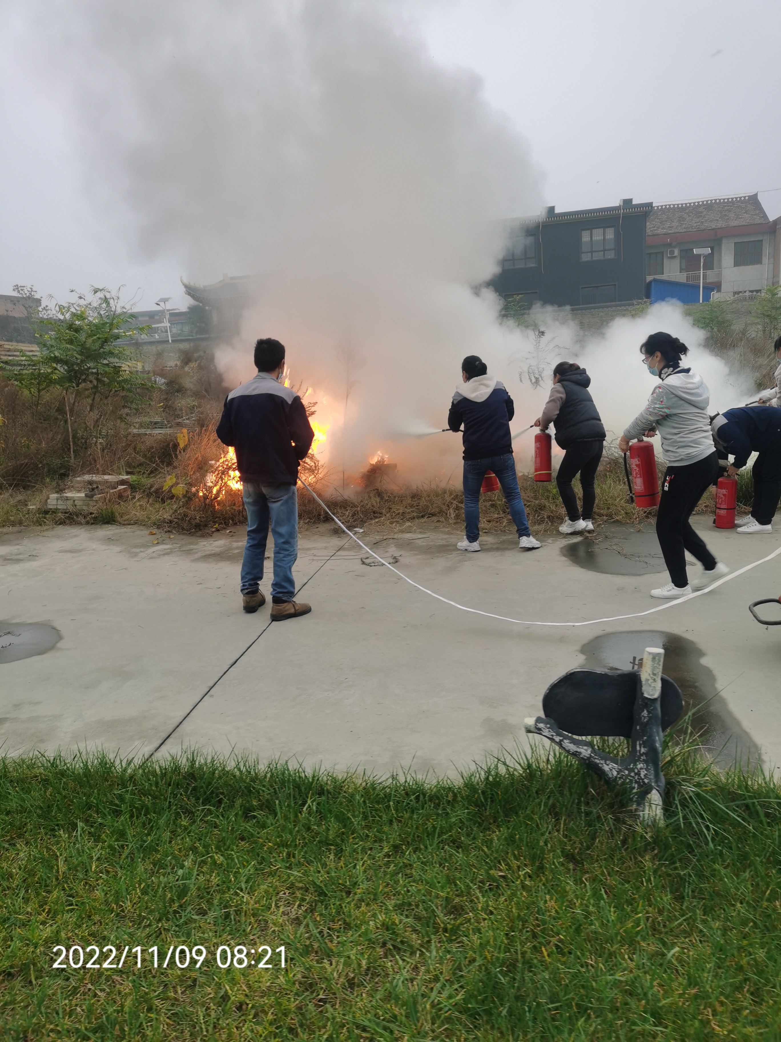 首先,在消防演練實操之前,負責人給大家在會議室講述了,詳細的實操技巧,在活動之前,了解了相關的消防工具及應急處理的方法;下面活動進入實操步驟: