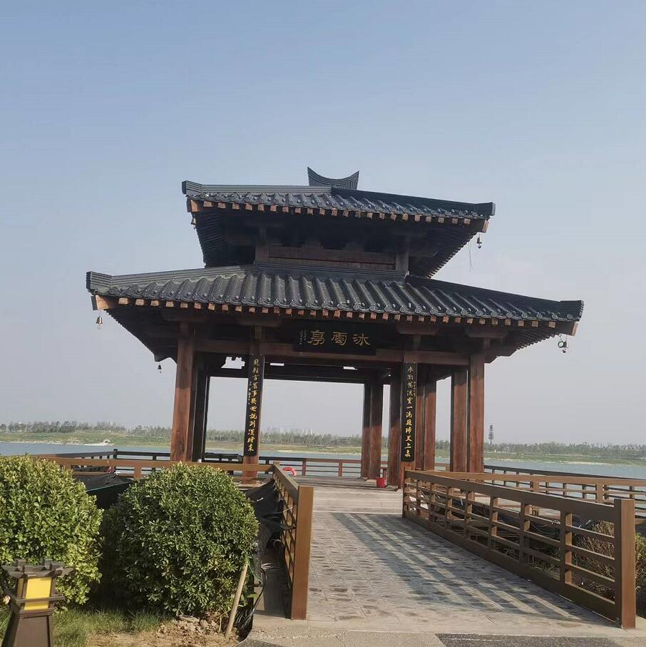 西安昆明池沐雲(yún)亭仿古瓦屋面工程安裝完成,主要采用東申瓦業(yè)的鋁合金仿古瓦,3號(hào)分體瓦,厚度1.2mm;風(fēng)格:漢朝風(fēng)格;下面為屋面完工效果圖;