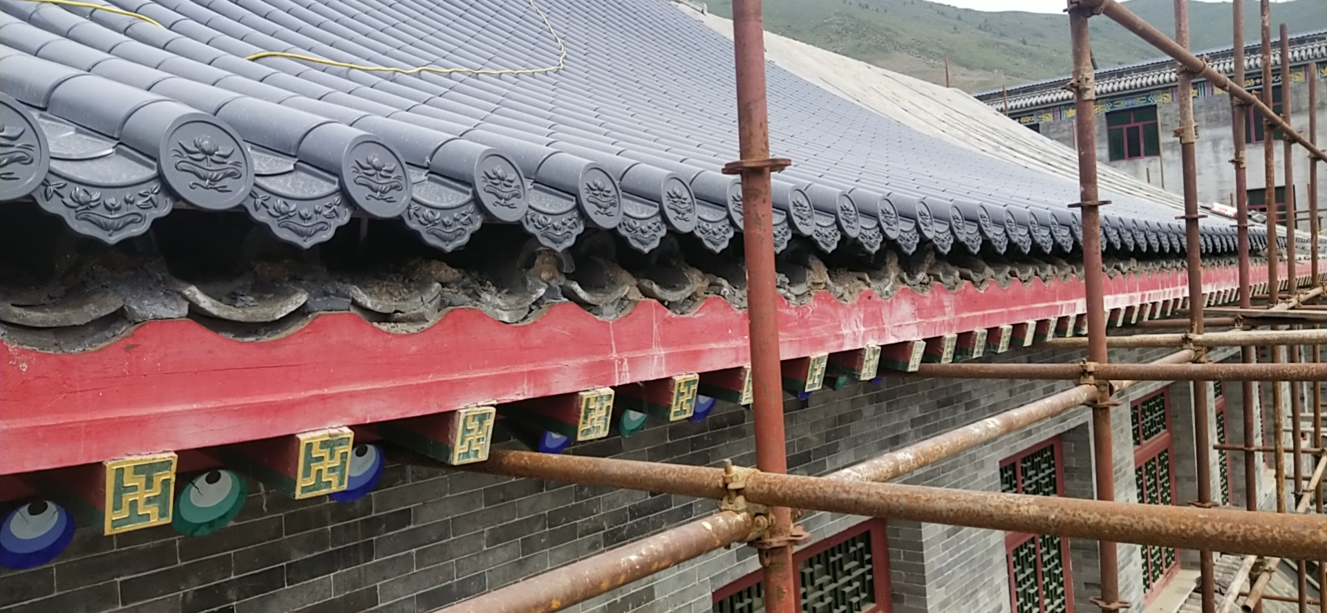 這塊可分為兩方面;換屋脊;一般仿古建筑屋面都有屋脊;屋脊比較占空間;在更換屋脊的情況下,要先將屋脊拆掉,還有瓦當滴水部分拆掉;