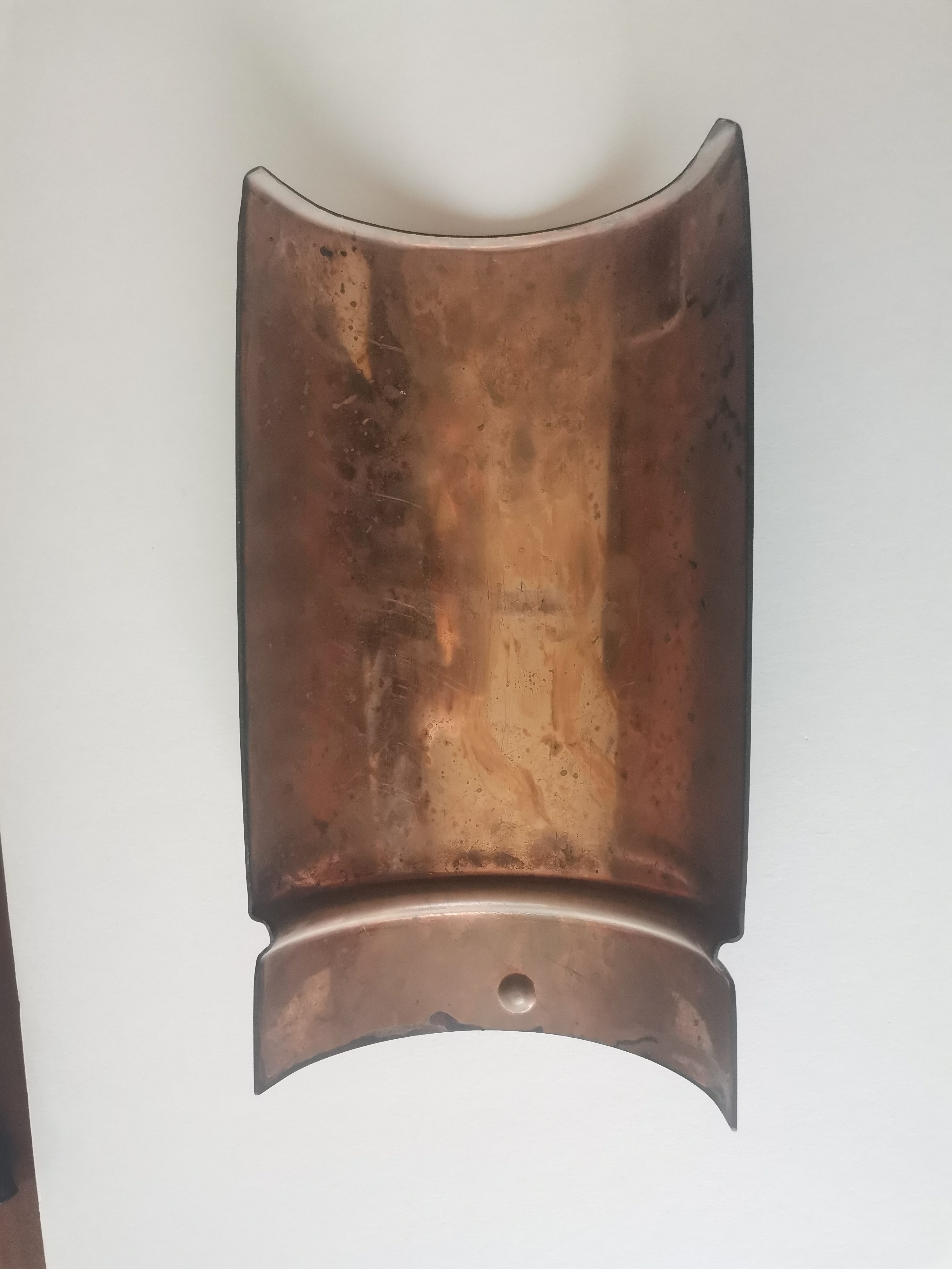生產方式很簡單,技術也很初級,大家可以看到非常簡單的設計;特別是筒瓦的設計也是靠一個一個打螺絲打上去的連接方式;這個是銅瓦的樣品。整體的瓦當滴水也是沖壓成型的。