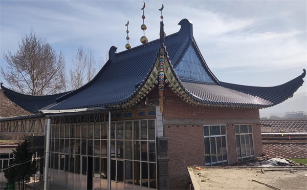仿古金屬瓦作為一種新型的屋面瓦,在近五六年來(lái),陸陸續(xù)續(xù)被應(yīng)用于清真寺屋面改造,而且使用率一直走高;仿古金屬瓦最開始使用的區(qū)域?yàn)槲鞅钡貐^(qū)的甘肅地區(qū);這幾年附近的青海,寧夏區(qū)域的清真寺也都開始使用仿古金屬瓦,很多寺廟的主任都對(duì)仿古金屬瓦上屋面后的效果贊不絕口。
