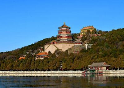 我們再看頤和園萬壽山,最重要的建筑就是八角攢尖的寶頂-佛香閣。前面是排云殿。非常嚴(yán)謹(jǐn)?shù)闹休S對稱。對著前面的昆明湖。旁邊還有一些庭院組合。也有一些軸線對稱。其他的地方就是自由組合了。