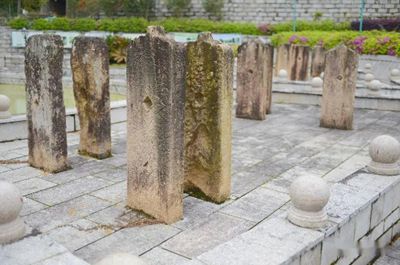 旗桿石在福建、廣東、江西客家地區比較常見,與華表有相似之處,但作用不同。古代科舉制的封建社會里,族中倘有人經過科舉應試獲得功名者,要在祠堂或圍屋門前豎立石旗桿。由于覓石不易,于是有人便代之,旗桿選用約大于33厘米大口徑的杉木,旗桿的下半部開鑿有兩個孔,與旗桿夾的孔相一致,豎立后,兩邊再用兩塊石柱鑲夾固定。