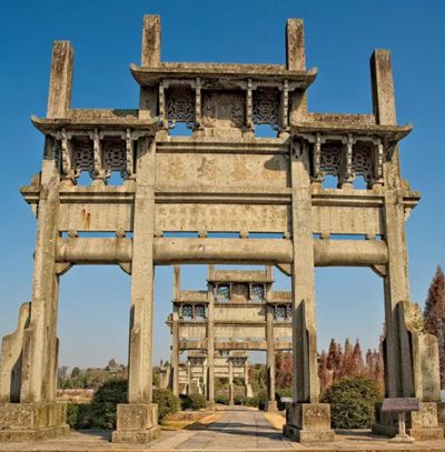 牌坊是中國傳統建筑的特色,是封建社會為表彰功勛、科第、德政以及忠孝節義所立的建筑物。一般建在大門外軸線前端或建在大門內部院子中。也有一些宮觀寺廟以牌坊作為山門的,用來標明地名。牌坊也常是祠堂的附屬建筑物,昭示家族先人的高尚美德和豐功偉績,兼有祭祖的功能。