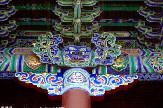 所有屋頂皆具有優美舒緩的屋面曲線琉璃瓦。無論它是源于古人對杉樹枝形還是對其他自然界物質的模仿。這種藝術性的曲線先陡急后緩曲,形成弧面。不僅受力比直坡面均勻,而且易于屋頂合理的排送雨雪。銅瓦