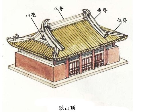 殿。這種屋頂只有帝王宮殿或敕建寺廟等方能使用;琉璃瓦