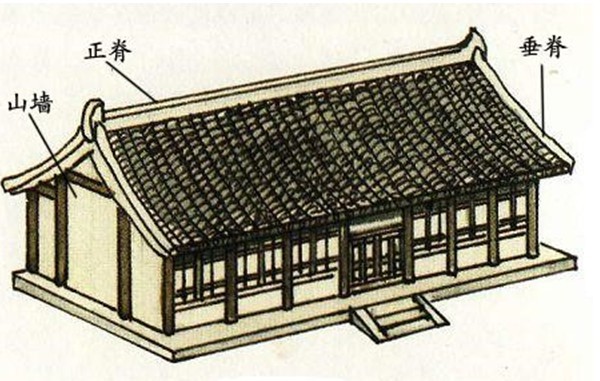 等級再次的屋頂主要有懸山頂(只有前后兩個坡面且左右兩端挑出山墻之外)仿古瓦廠。