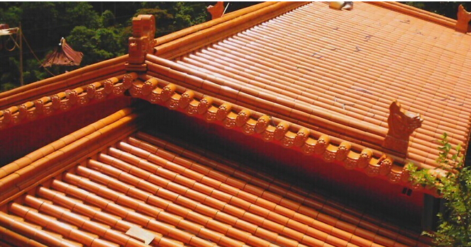 斑駁的色彩。瓷瓦的形狀更是變化多樣,有各種規(guī)格的波浪形瓦片,也有形狀奇特的“鬼瓦”。設(shè)計(jì)師充分利用瓷瓦的