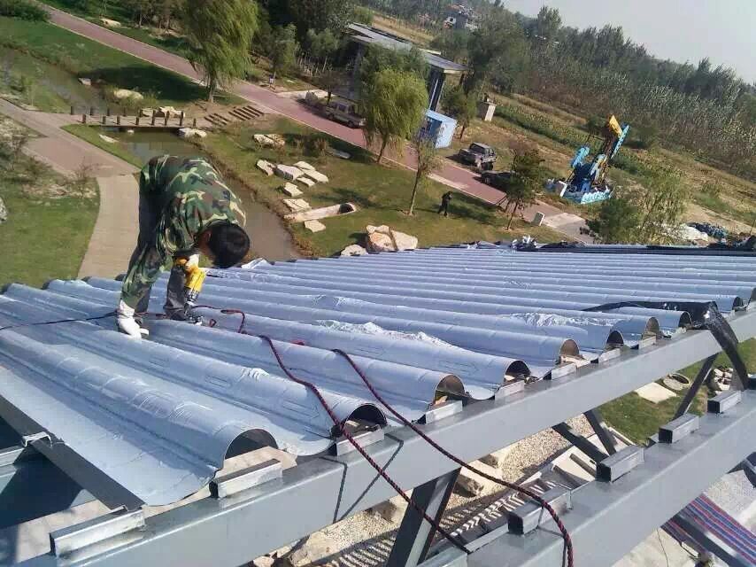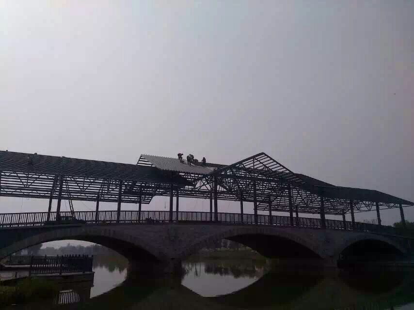 該橋?qū)⒉捎梦覀児狙邪l(fā)生產(chǎn)的新型連體仿古鋁瓦,施工快,安裝方便!為客戶把該橋做的更美觀,成為一道亮麗的風景而努力!